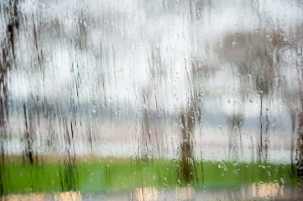 Regendruppels op het raam.