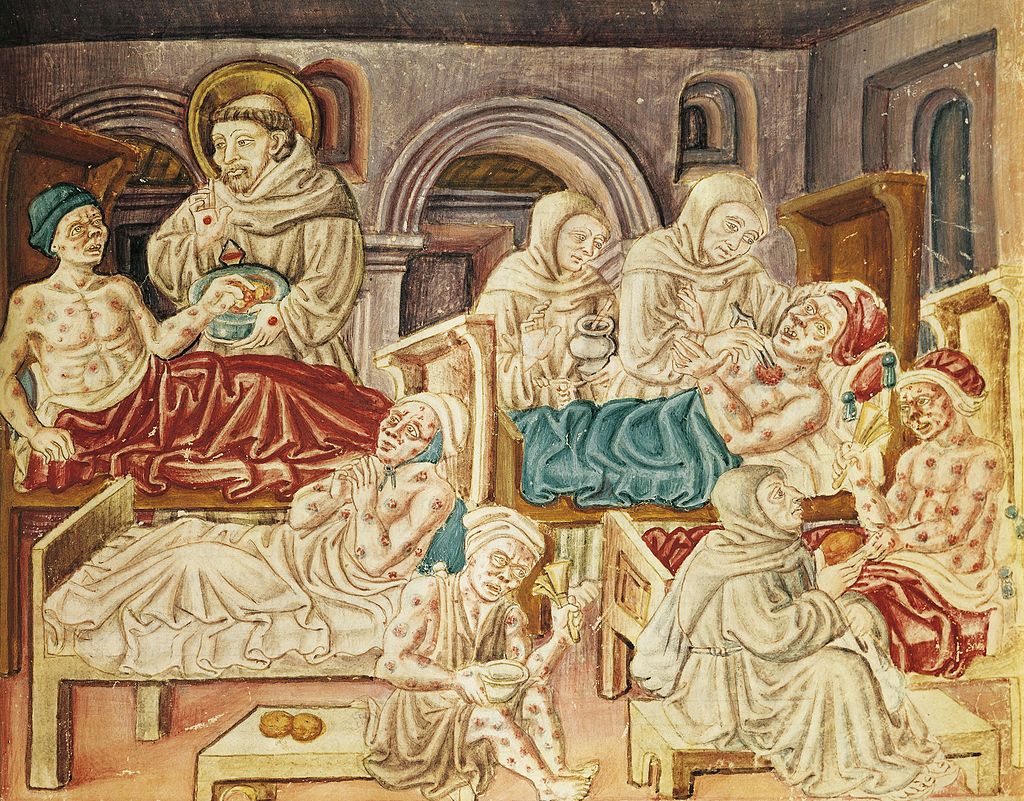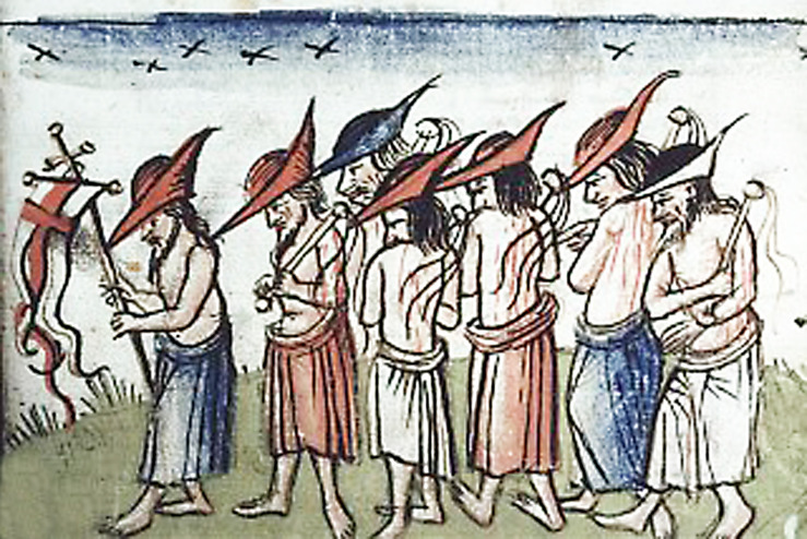 But the 14th century is not only a turbulent time for society. Also the Catholic Church is struggling during this century. First of all, there is a conflict with the Franciscans or greyfriars. They are living according to the ideal of poverty, completely without possessions. But in the opinion of the church, this is too extreme and in 1323 the pope declares that the idea that Christ was living without possessions, is heretical.
