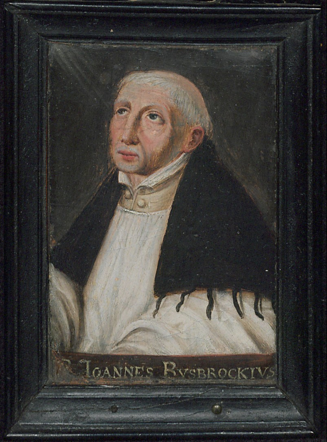 Portret (ca. 1580) van de 14e-eeuwse mysticus Jan van Ruusbroec. De lichtstralen op zijn gezicht vanuit de linker bovenhoek stellen goddelijke inspiratie voor.